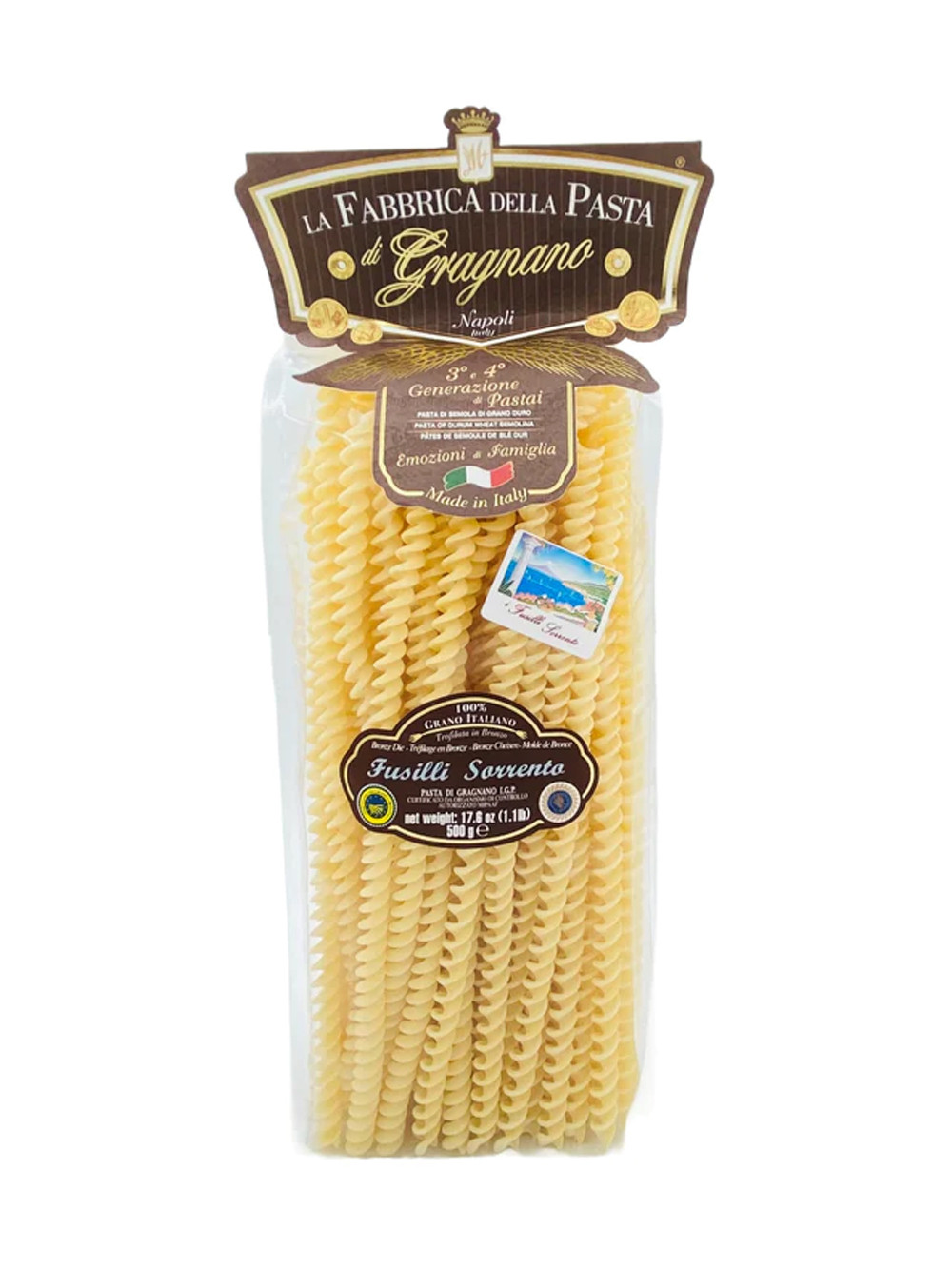 В наличност Фузили "Соренто" 500 гр. LA FABBRICA DELLA PASTA Категории: Dry pasta Код на продукта: 8033406268516 Нето тегло: 500гр.